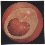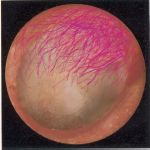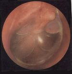 鼓膜が真っ赤になり、時に中耳腔に膿や血がたまることもあります。それらが耳漏としてでてくることもあります。鼓膜が破れて膿などが外へ出てくればたいてい耳の痛みは和らぎます。