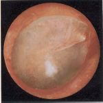 鼓膜の一部あるいは全部がへっこみ、鼓膜が中耳腔の粘膜とくっついてしまうタイプの中耳炎です。